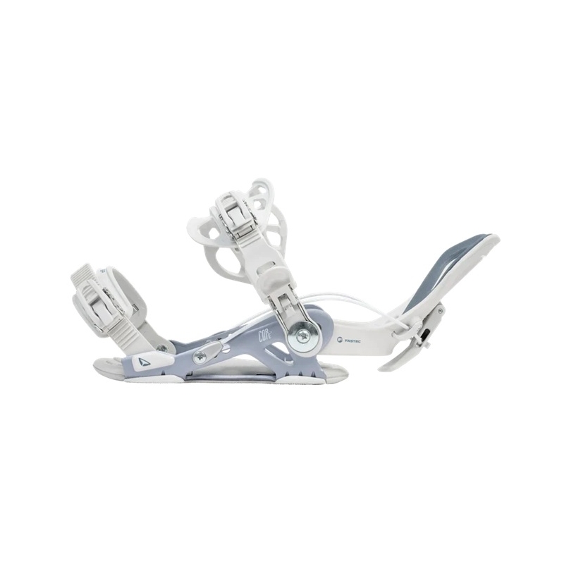 Abgesehen von ihrem System sind diese Schneebindungen sehr leicht, da sie aus Aluminium und ultraleichtem Fiberglas hergestellt sind. Sie sind sehr gut am Schuh befestigt, da sie eine anpassungsfähige weiche Zehenbindung haben (kein Plastik wie bei den Private-Bindungen).