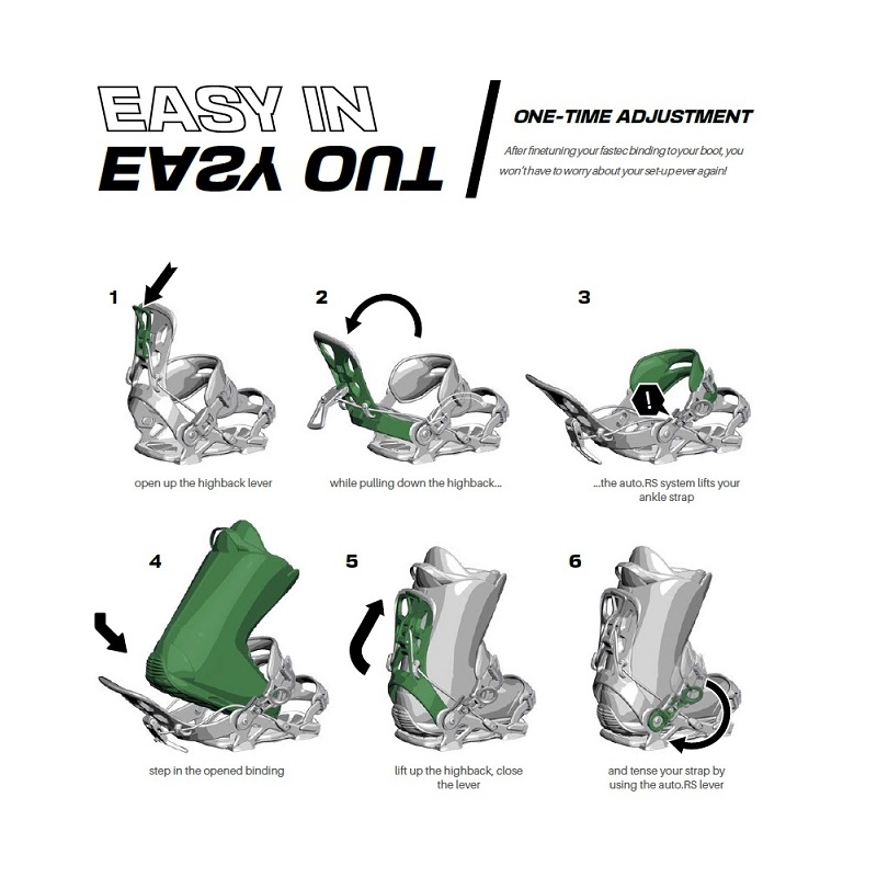 En dehors de son système très confortable, ces fixations de neige sont très légères puisqu'elles sont composées de fibres de verre ultra-légères. La fixation avec la botte est très bonne puisque les attachements sont pointus. Pour le freestyle, ces fixations ont des points rembourrés dans le talon et la pointe. Le disque est recouvert de telle sorte que les fixations ne soient pas déviées.